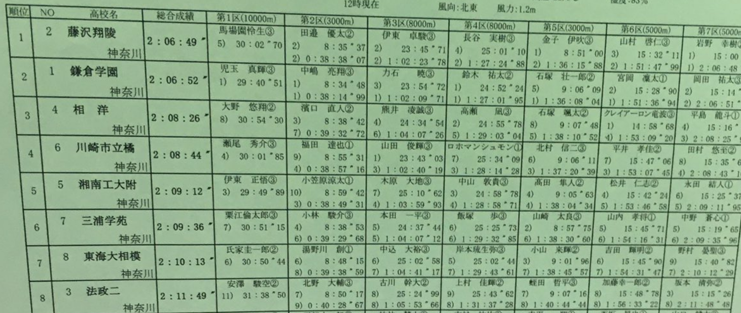 1位 2時間06分49秒 藤沢翔陵(神奈川県代表)