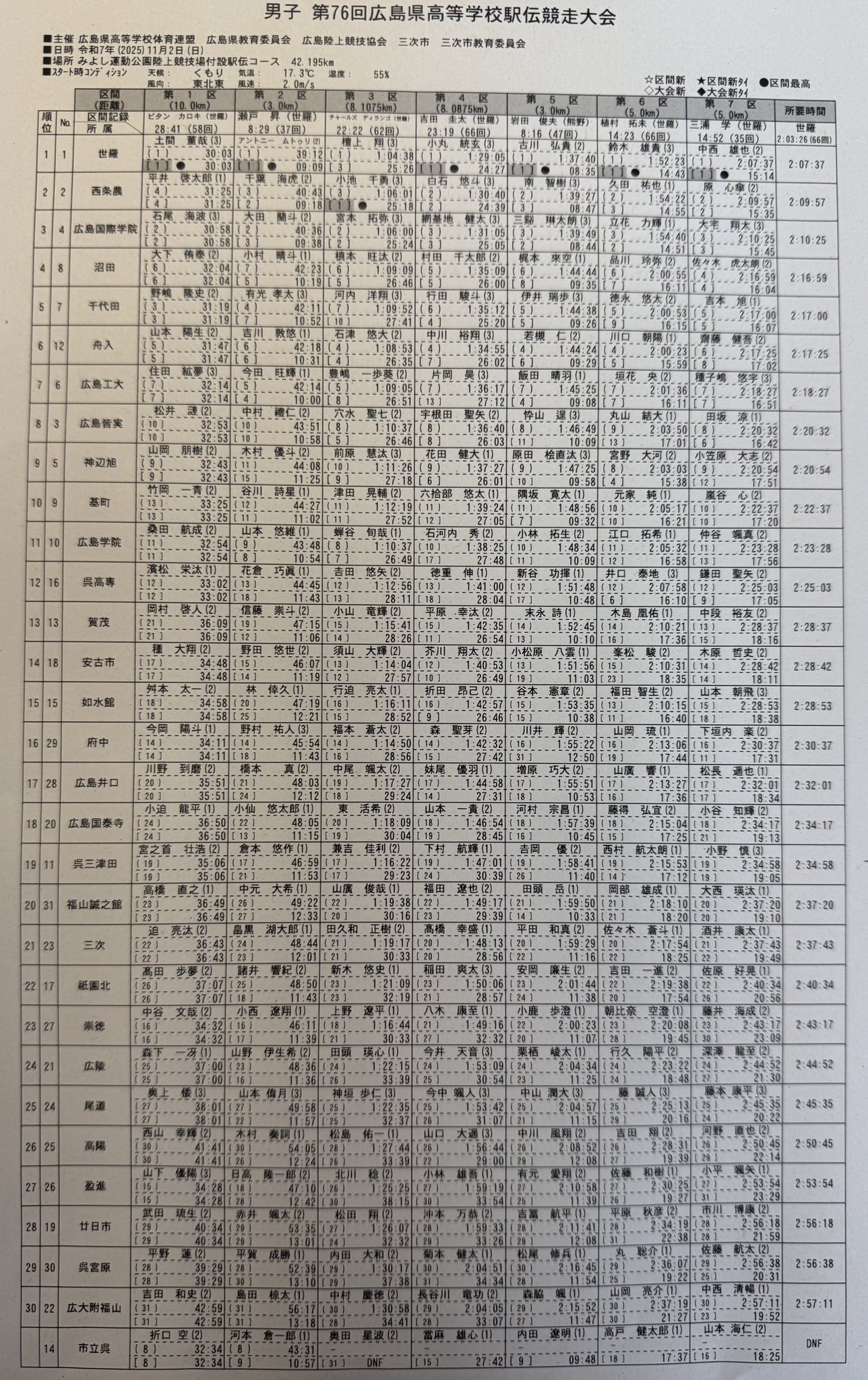 ホーム » 未分類 » ・2025広島県高校駅伝 結果