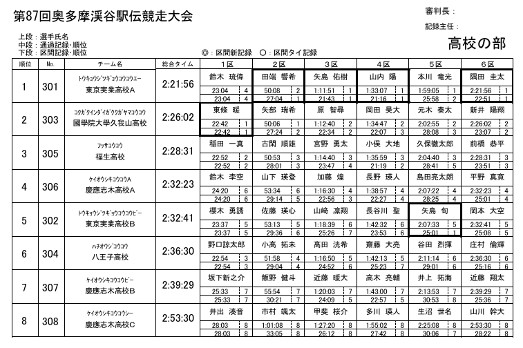 ホーム » 未分類 » ・第87回奥多摩渓谷駅伝競走大会 結果